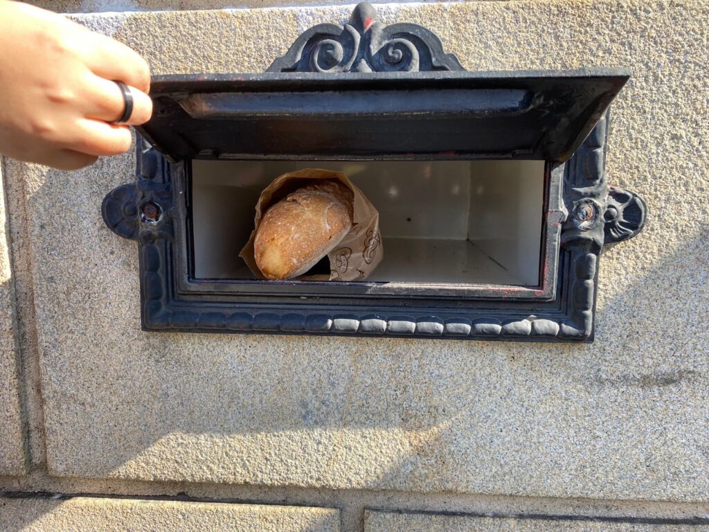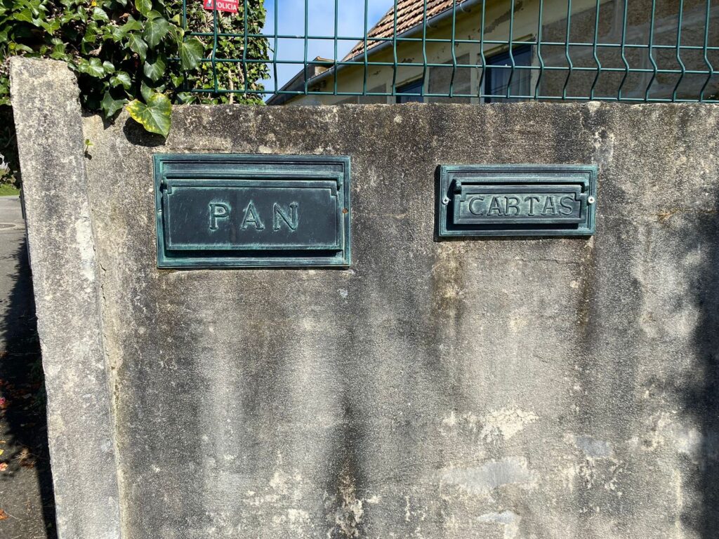 Al llegar a Mos nos impactamos con el panadero del pueblo que dejaba barras de pan en un buzón muy similar al de las cartas.